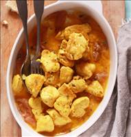 3. Diluer le curry dans le verre de bouillon de légumes et en arroser la viande.