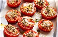 Retournez les tomates en vous aidant d’une spatule et déposez une cuillère à soupe du mélange sur chacune d’elles.
